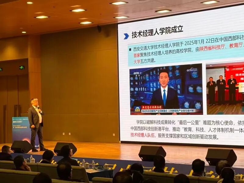 11月7日,第三届中国技术经理人沙龙在西安交通大学创新港校区隆重举行,来自全国各省市二十多家技术经理人行业协会负责人参加会议。西安交通大学党委常委成进、陕西省技术经理人协会会长杨正国到场致辞。本次沙龙聚焦“技术经理人教育培训模式创新与AI赋能”,旨在响应创新驱动发展战略,共同探讨如何以人工智能重塑人才培养体系,以创新理念引领科技成果转化的未来路径,为构建高水平科技自立自强的人才支撑体系凝聚共识、汇聚智慧。