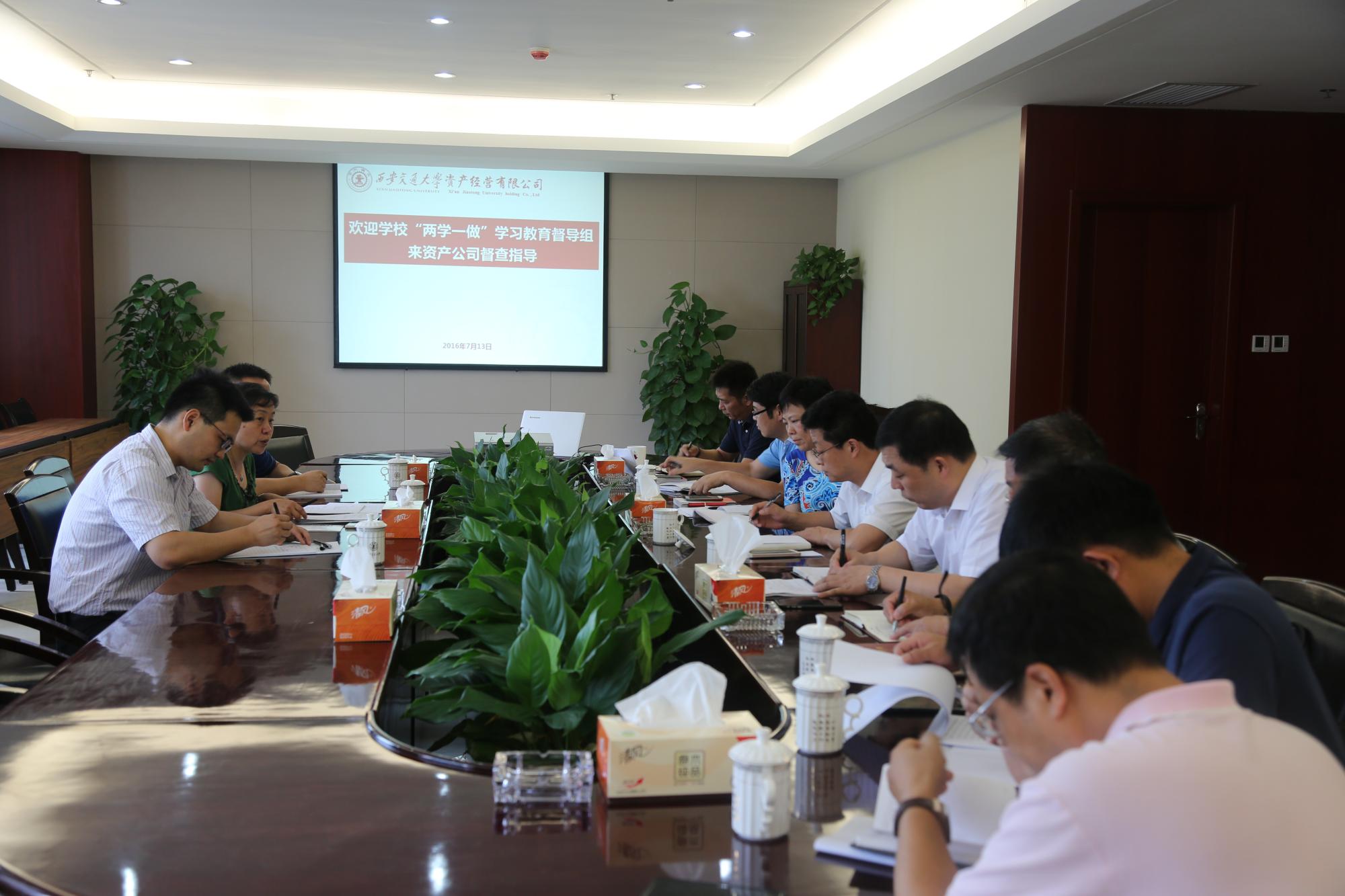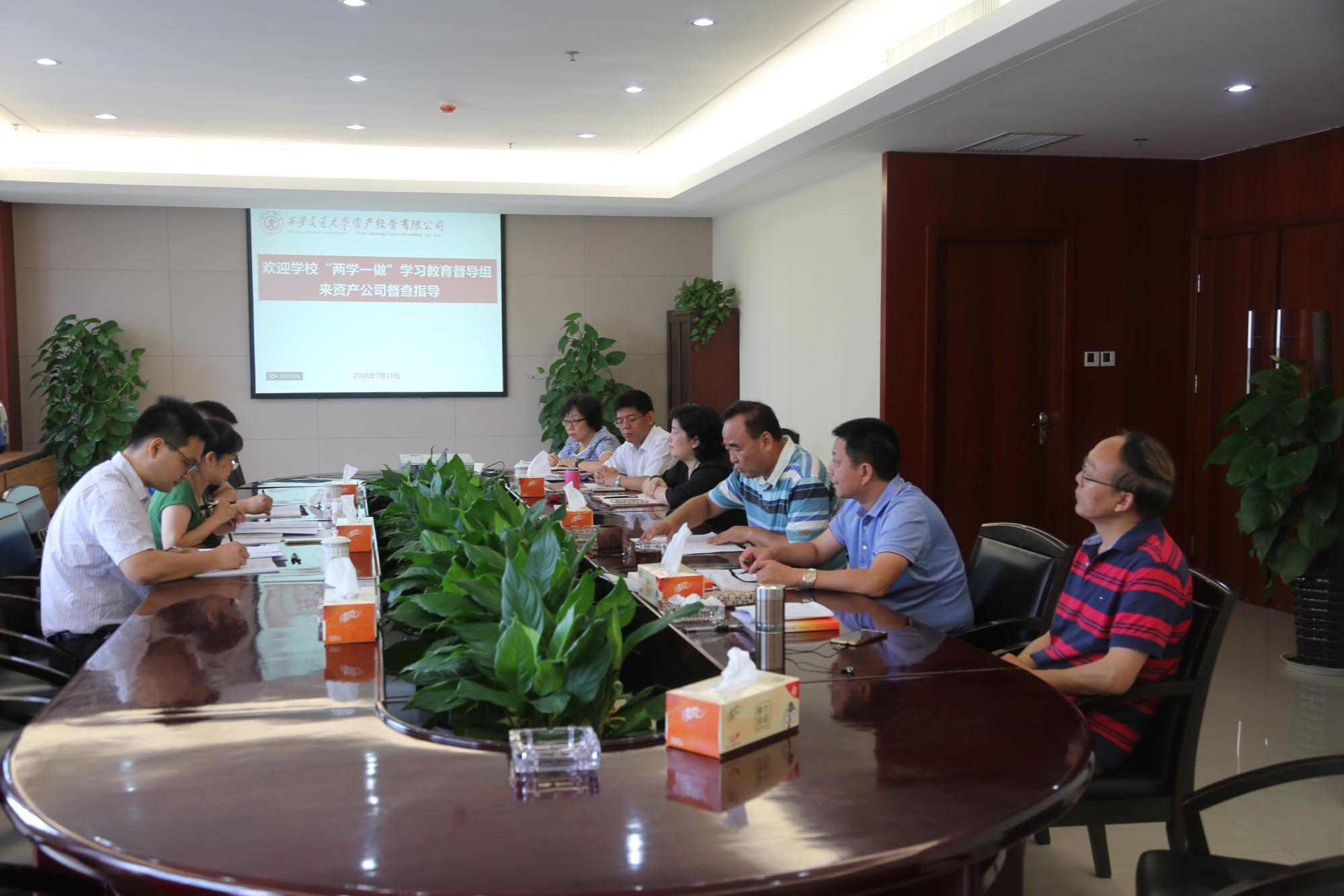7月13日上午,学校“两学一做”学习教育督导组来资产公司进行督查指导。督导组组长、统战部部长谢雪,副组长、航天航空学院党委副书记李成杰,党委组织部张华东三位同志对资产公司党委前一阶段“两学一做”学习教育开展情况开展督查指导。资产公司党委副书记程鹏迅、党委委员、党支部书记及党员代表分别参加了专题会议和座谈会。